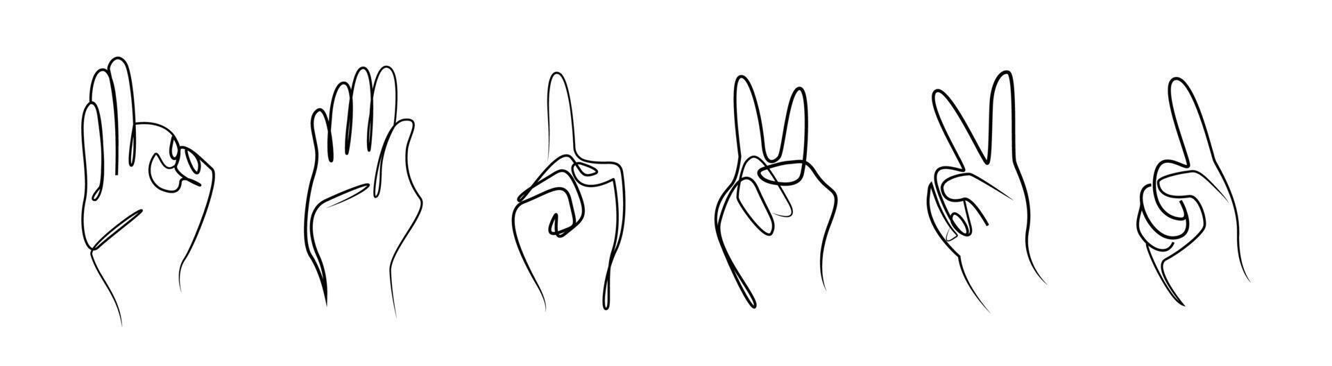 Hand gestures line icon set. Gesturing. Sign language. Continuous line hand gestures. graphic EPS 10 Pro Vector