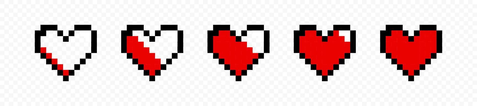 Pixel heart icon set. art 8 bit health heart bar. Gaming controller, symbols set. Pixel art heart. game interface. Pixel game life bar. graphic EPS 10 Pro Vector