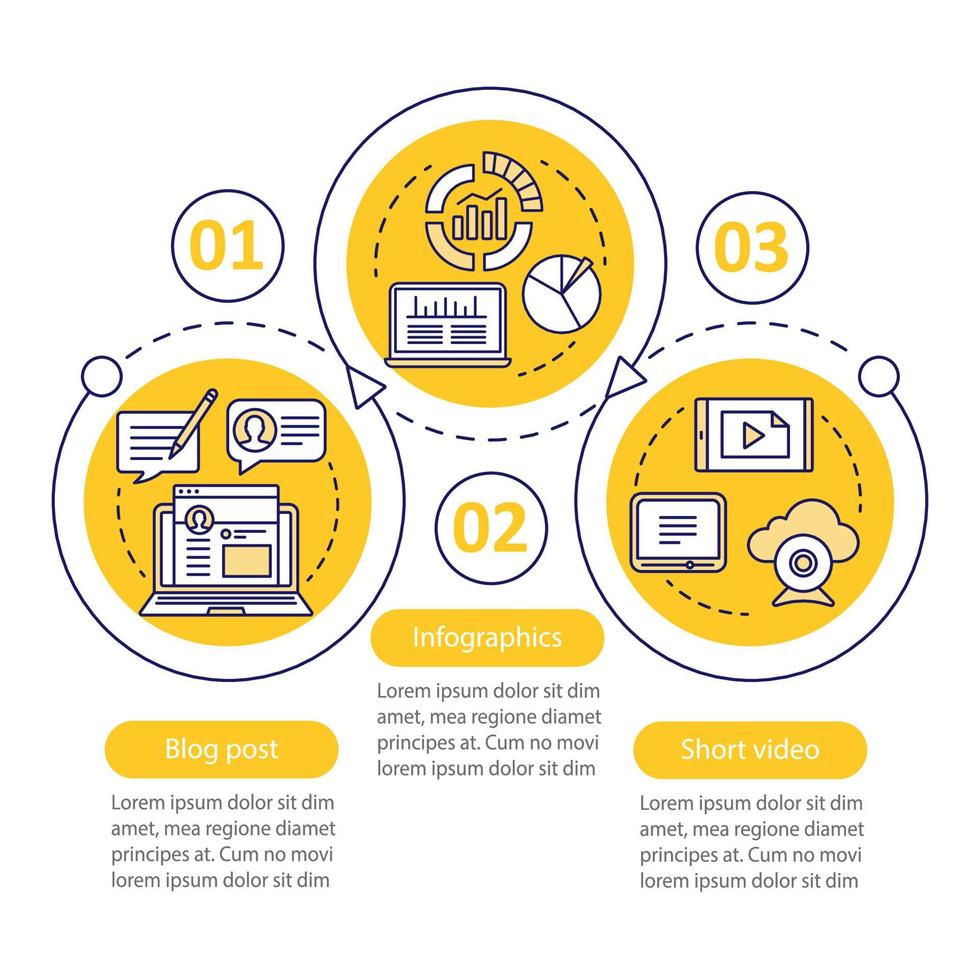 Awareness content vector infographic template. Business presentation design elements. Data visualization with three steps and options. Process timeline chart. Workflow layout with linear icons Pro Vector