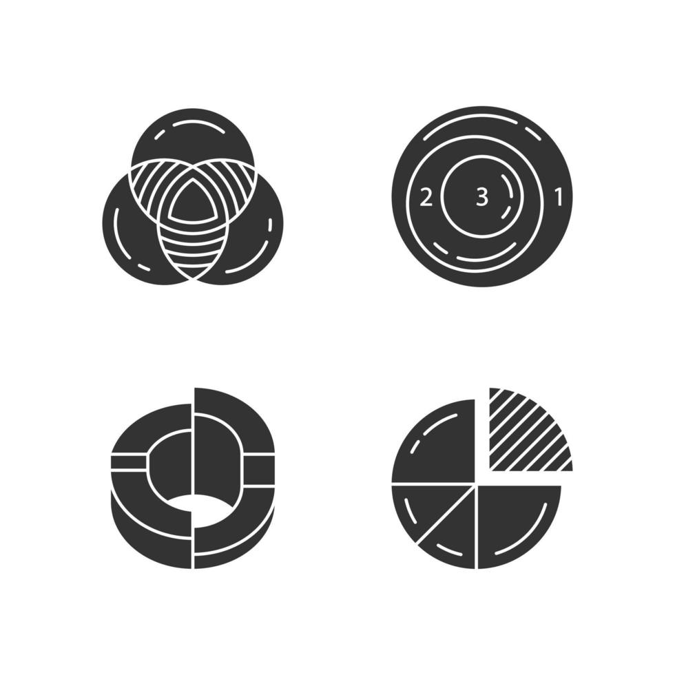 Diagrams glyph icons set. Data graphic visualization. Statistical analysis. Symbolic representation of information. Marketing analysis. Math, logic. Silhouette symbols. Vector isolated illustration Pro Vector