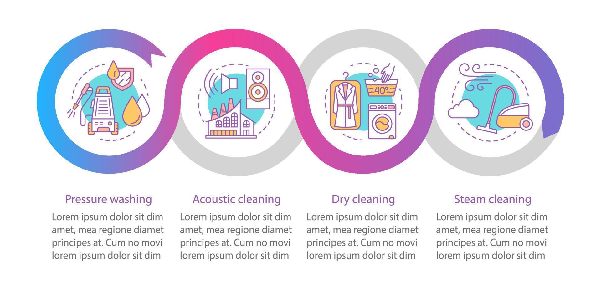 Cleaning methods vector infographic template. Pressure washing. Business presentation design elements. Data visualization, four steps. Process timeline chart. Workflow layout, linear icons Pro Vector and Pro SVG