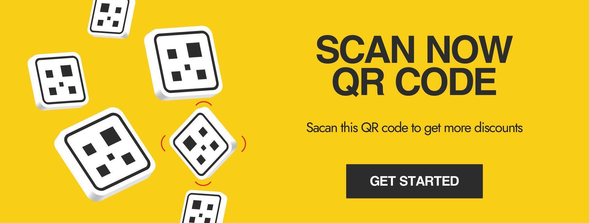 Scan QR code. QR code icons falling cover banner with plain yellow background. Pro Vector