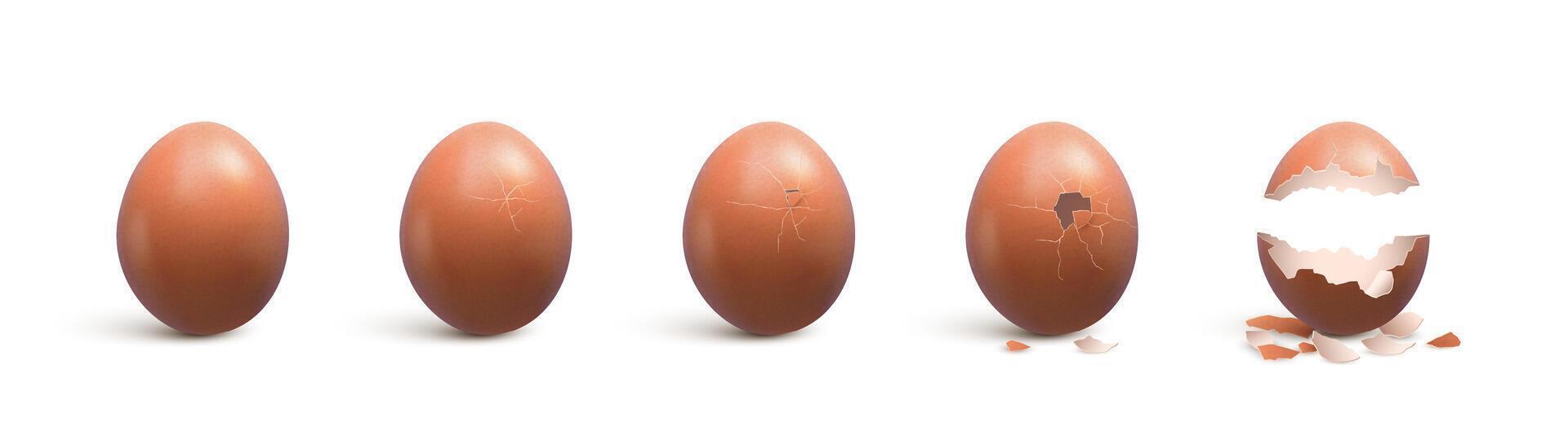 Realistic broken egg with cracks and shell pieces Pro Vector