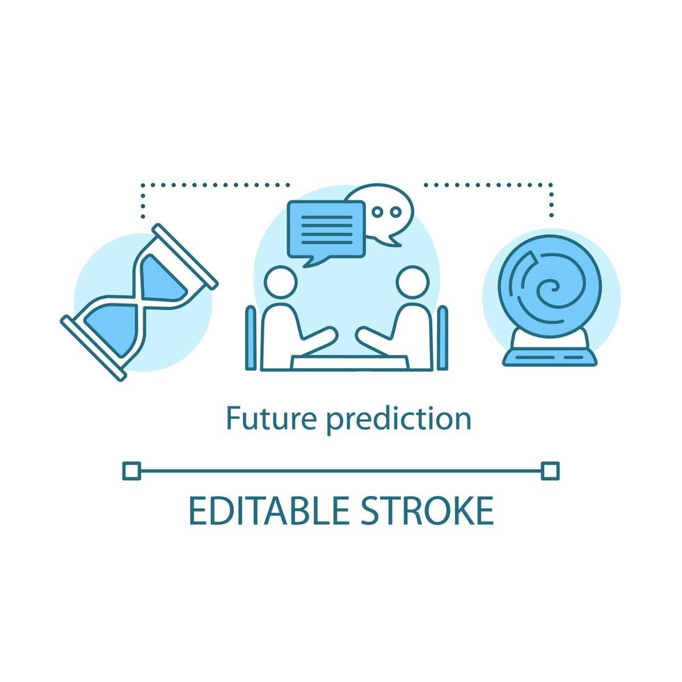 Future prediction concept icon. Fortune telling service. Divination and occultism idea thin line illustration. Hourglass, oracle and crystal ball vector isolated outline drawing. Editable stroke Pro Vector