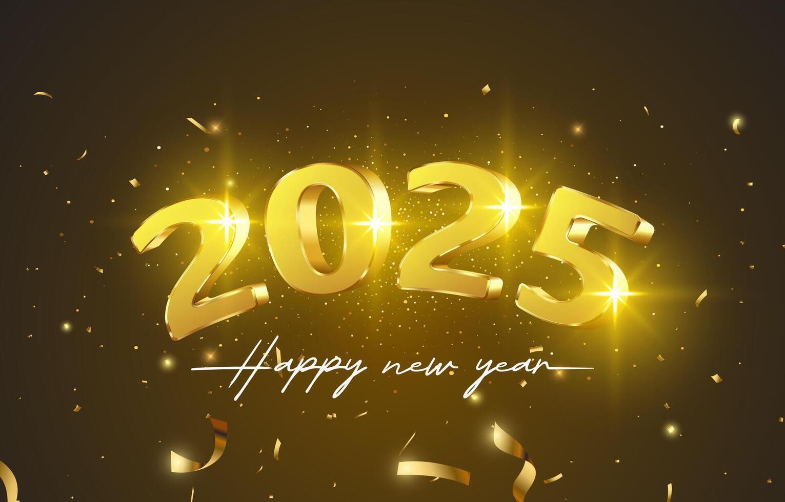 2025 happy new year template banner with modern 3d text effect and beautiful luxury shiny ornament abstract gradient brown background design Free Vector