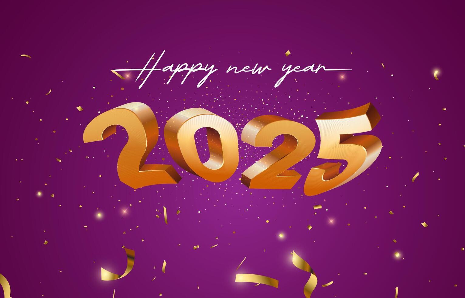 2025 happy new year template banner with modern 3d text effect and beautiful luxury shiny ornament abstract gradient purple background design vector