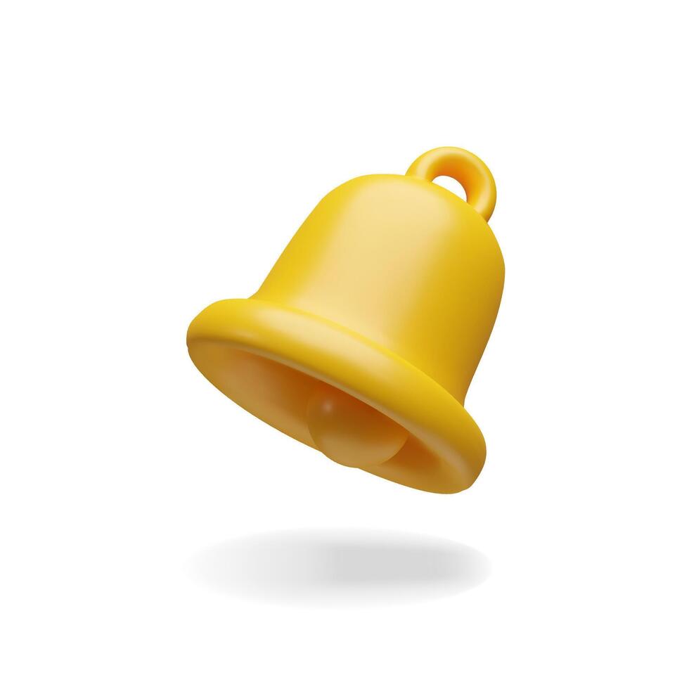 3d render bell reminder. Three-dimensional alarm icon illustration. Alert message notification. Notice of calls, new chat, newsletter, mail or social media message in application. Communication Pro Vector