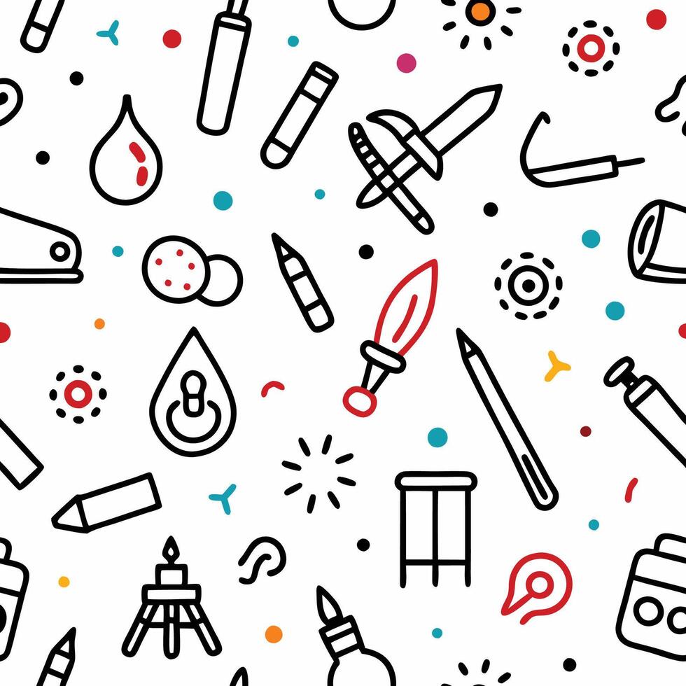 seamless pattern with various objects and tools vector
