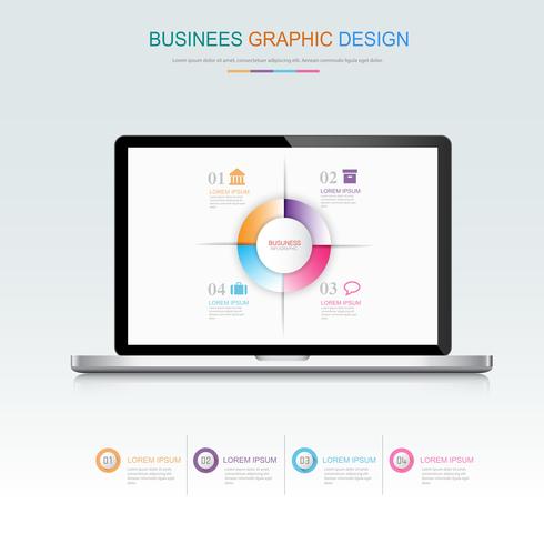 Computer laptop with business infographic on screen,3d and flat vector design illustration for web banner or presentation used Free Vector
