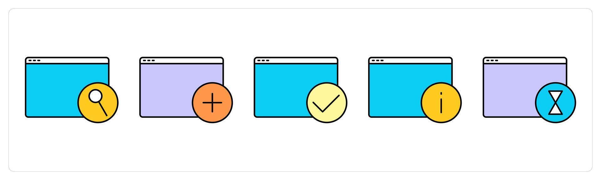 A set of web page icons as webpage search, create webpage, approve webpage Pro Vector