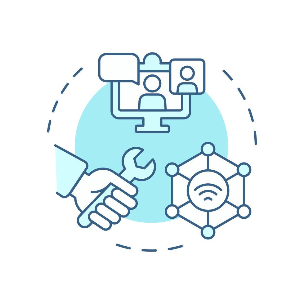 Remote support soft blue concept icon. Real-time tracking and monitoring. Field service management. Round shape line illustration. Abstract idea. Graphic design. Easy to use in article Pro Vector