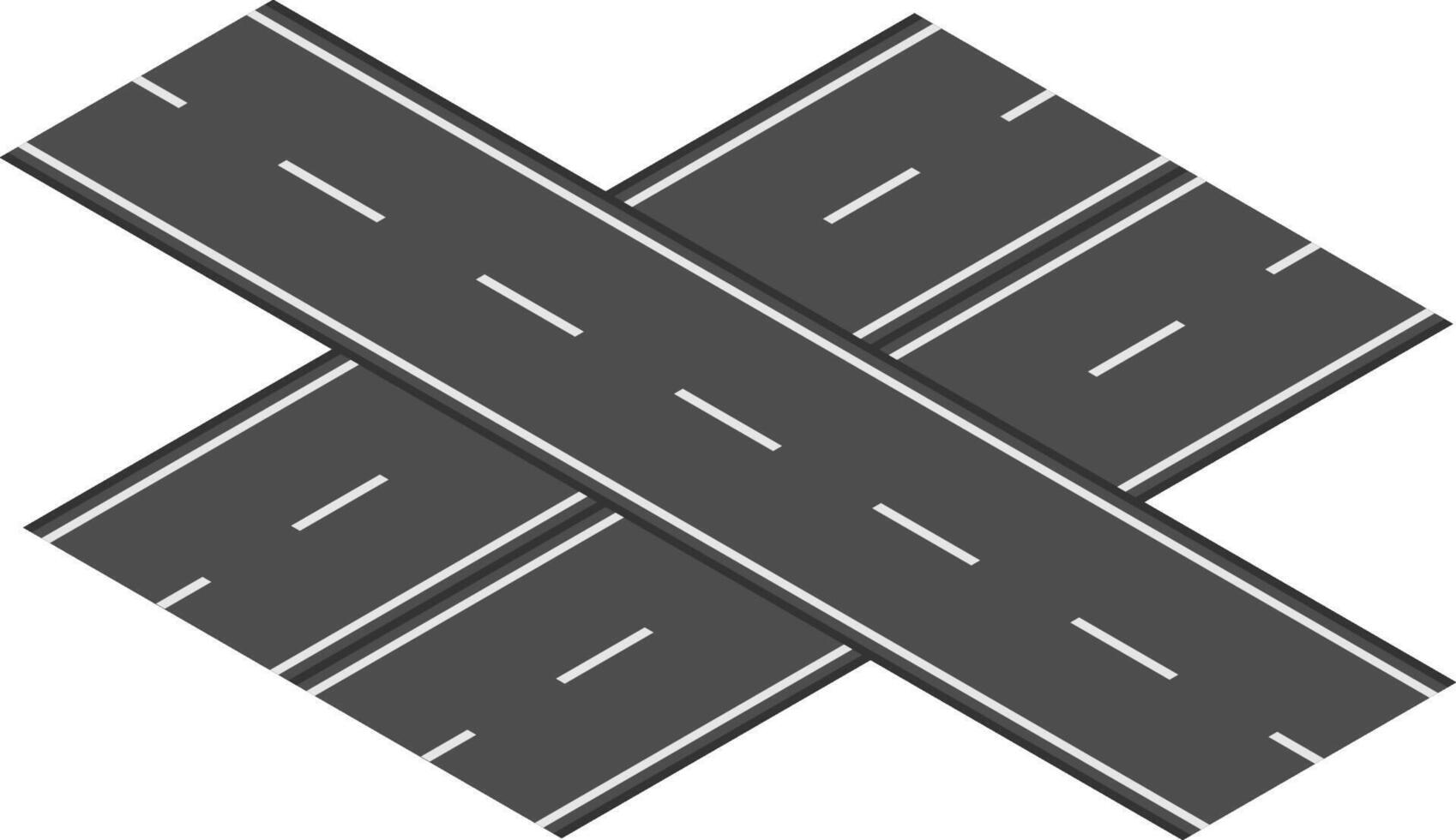 Intersecting roads forming an x shape with white lane markings on a clean white background, effectively representing intersection and transportation concepts Pro Vector