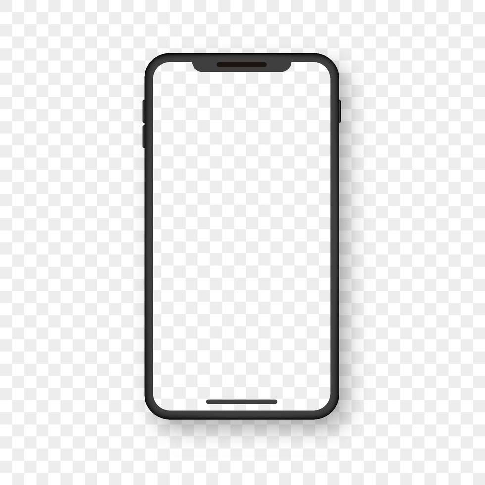 Smartphone Mockup with Transparent Screen. Black Mobile phone on Transparent Background with Blank Display. Mock up Realistic Smartphone. Front View. Vector illustration. Pro Vector