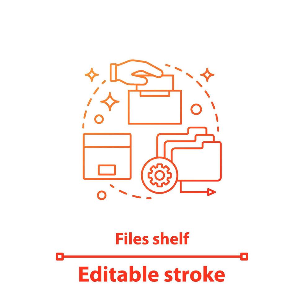 Files shelf concept icon. File management idea thin line illustration. Data storage. Archive. Vector isolated outline drawing. Editable stroke Pro Vector and Pro SVG