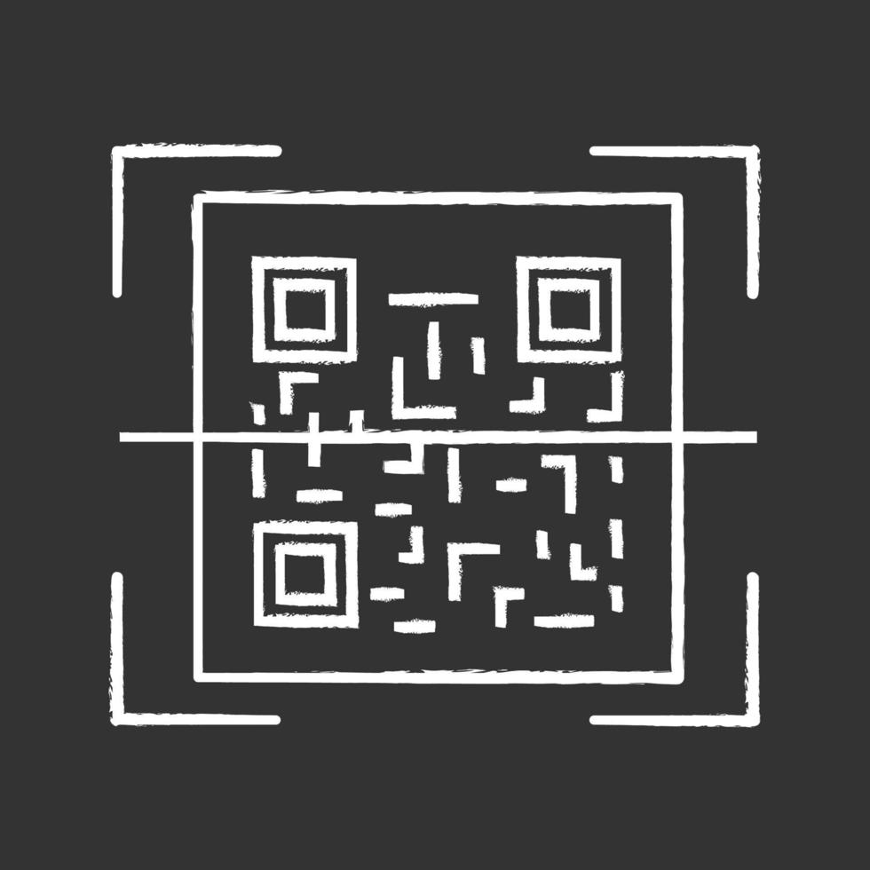QR code scanner chalk icon. Quick response code. Matrix barcode scanning app. Isolated vector chalkboard illustration Pro Vector