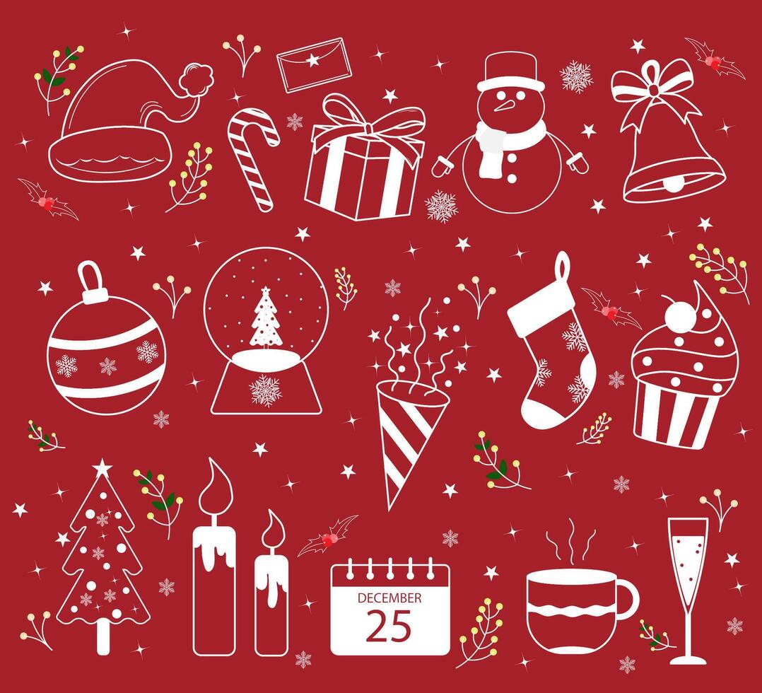 Outline Christmas Element on Red Background vector
