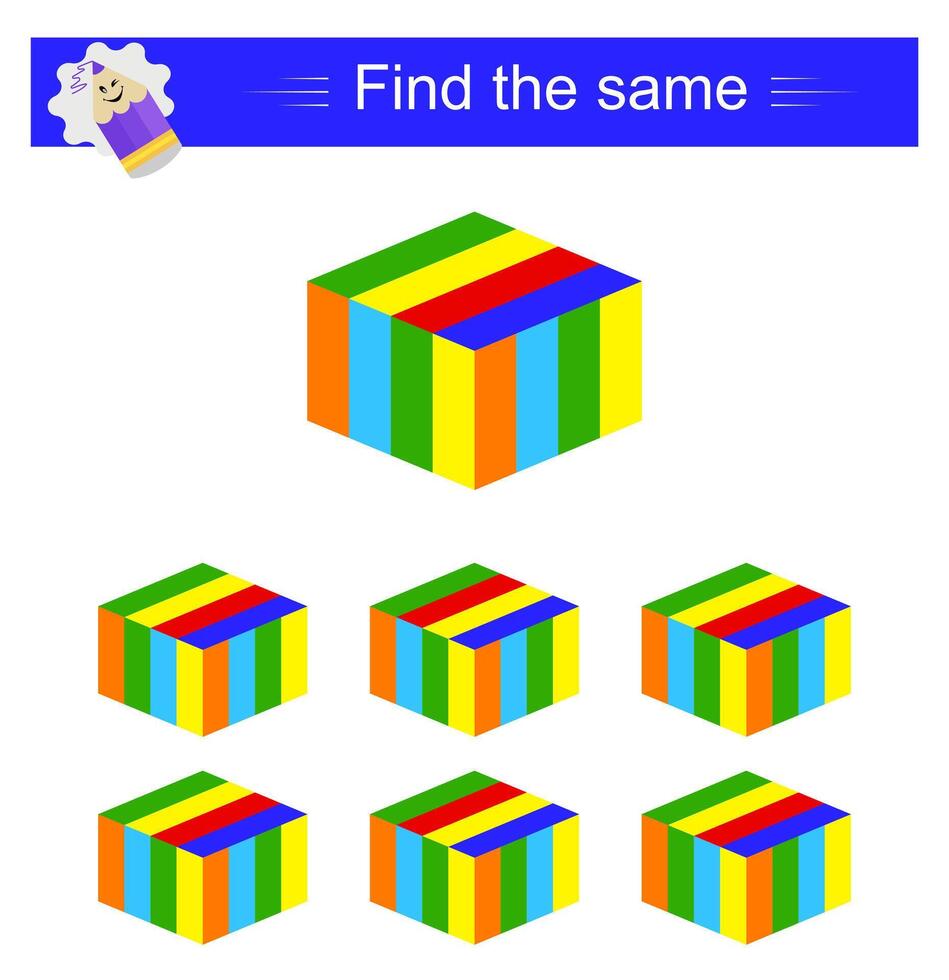 Puzzle game. Task for development of attention and logic. Need to find same cube. Pro Vector