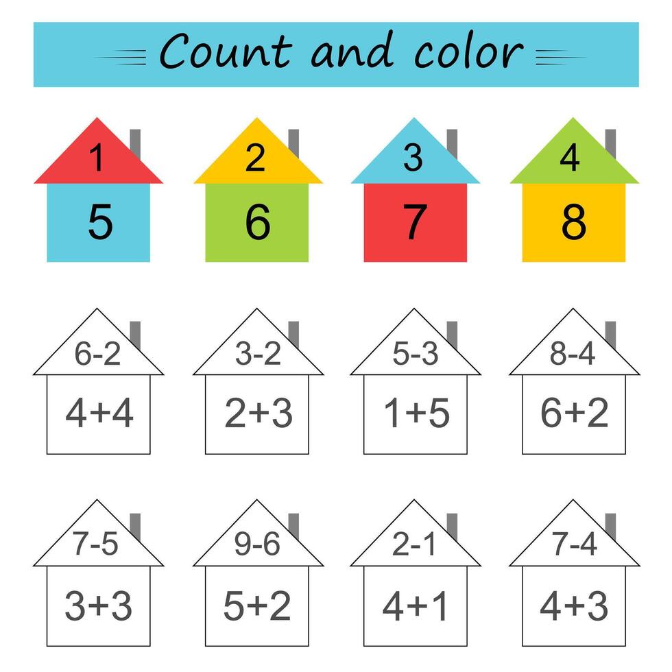 Math activity for kids. Developing numeracy skills. Number range up to 10. Pro Vector