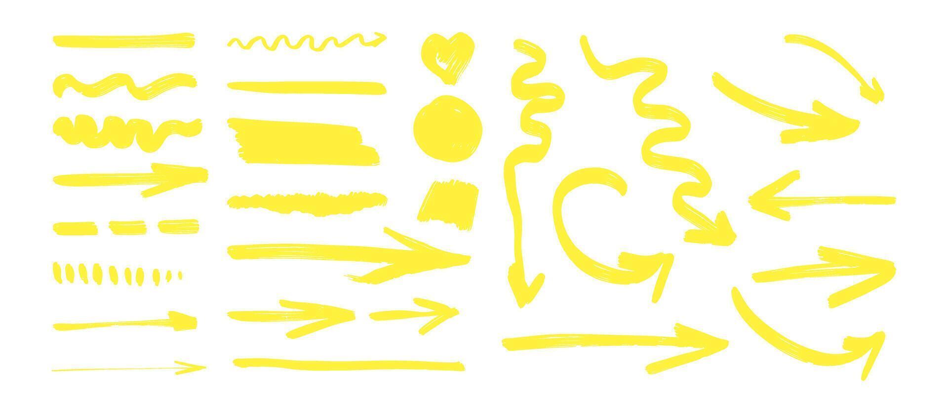 A set of yellow arrows and other shapes. Some of the arrows are pointing left, right, up, and down Pro Vector