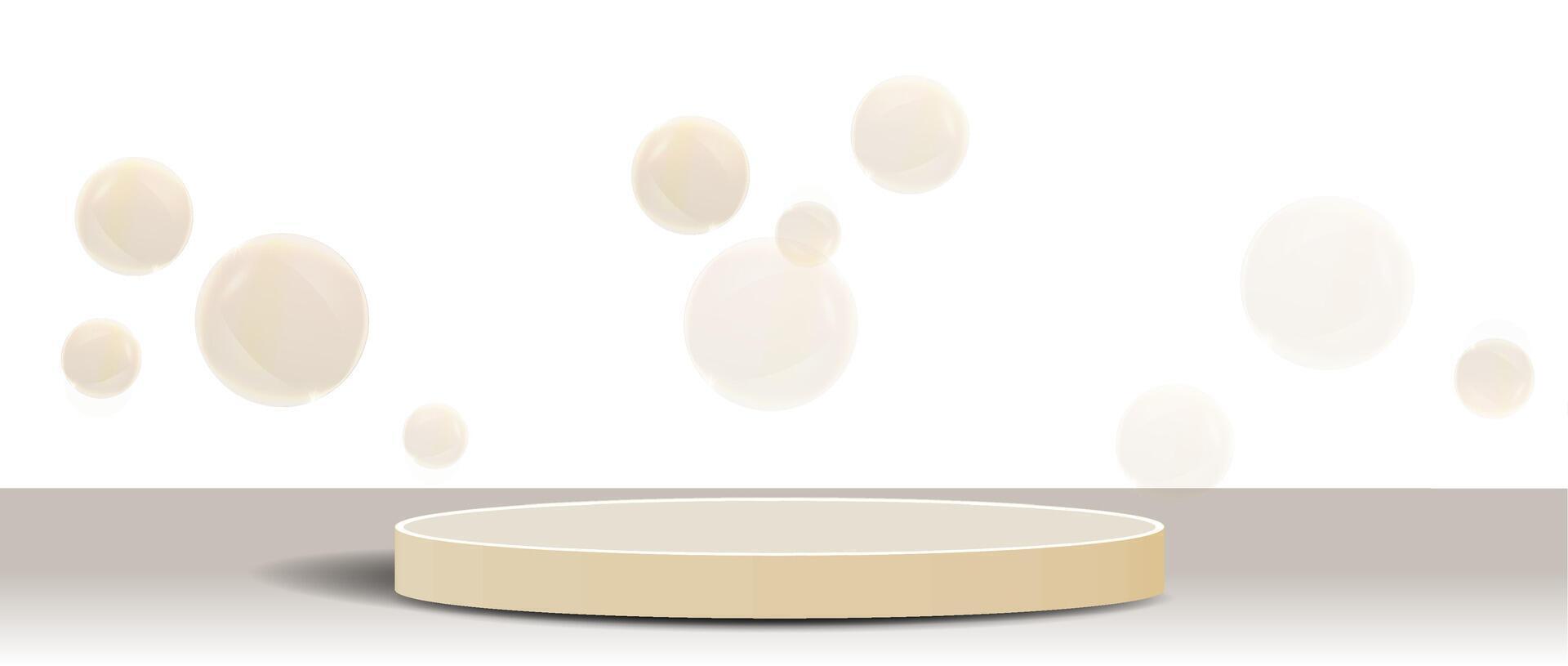 Soft circles float above a simple round platform in a light and minimalist setting during daylight. Pro Vector