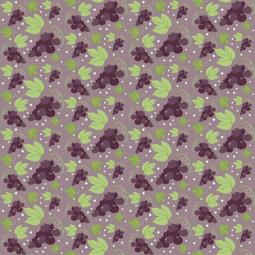 Vine seamless patterns with red ripe grape branch and leaves. Pro Vector