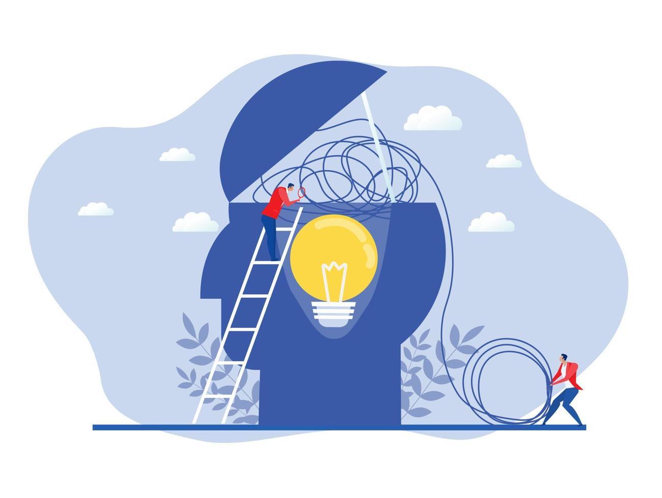 businessman manage Problems solution creative design of brain with and order in thoughts concept vector Pro Vector
