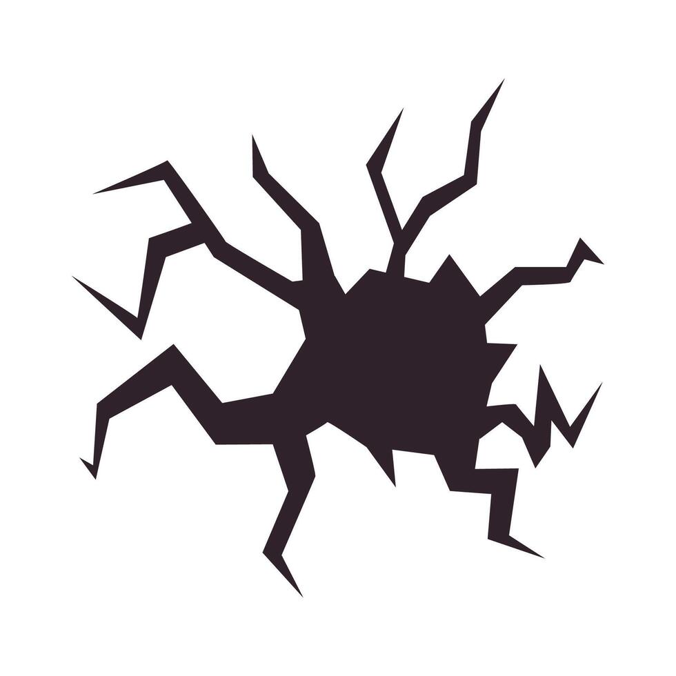 A hole in the ground surrounded by cracks, representing a damaged surface. The broken floor shows textured damage with visible fractures. Pro Vector