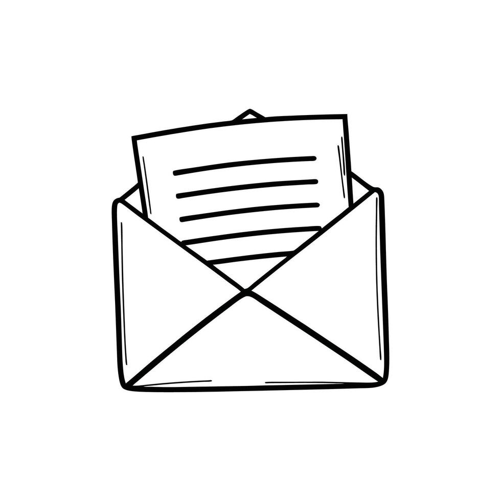 An envelope with a paper inside is shown in a line drawing Pro Vector