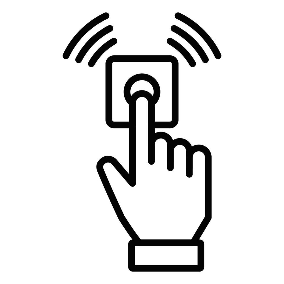 Doorbell icon with finger pressing button and signal waves. Editable stroke. Pro Vector