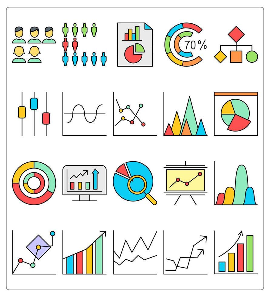 A set of 20 graph icons as employee, chart, chart document Pro Vector