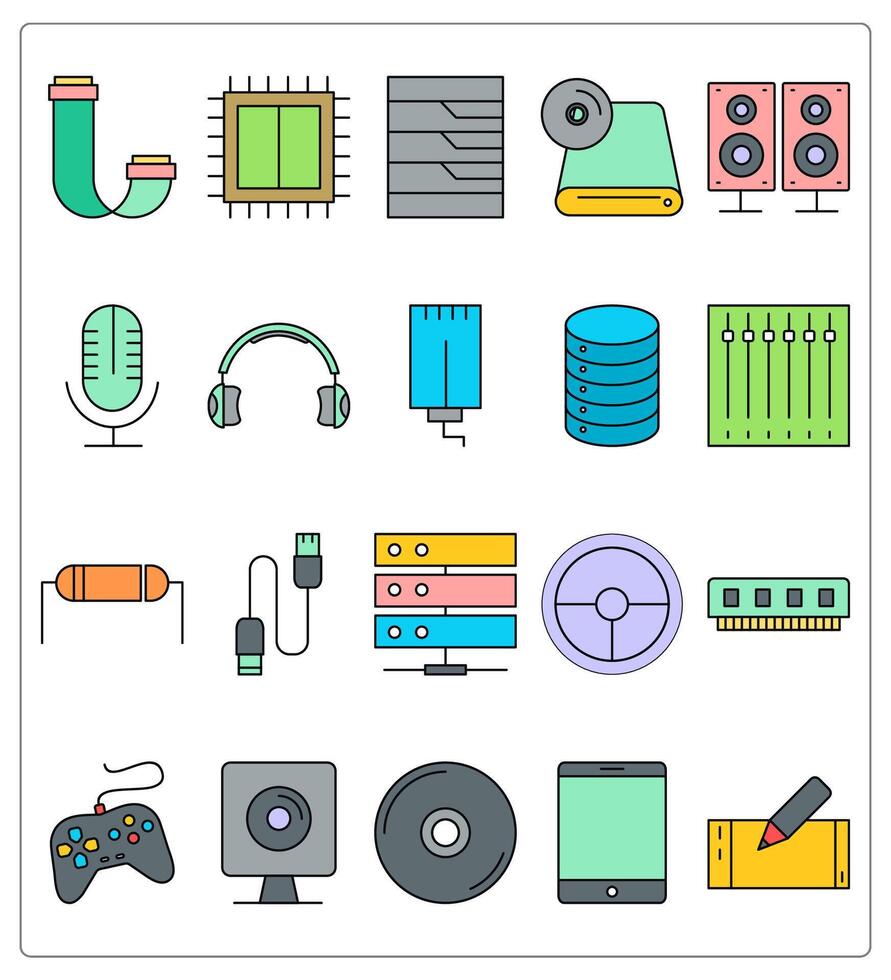 A set of 20 computer hardware icons as data bus, cpu processor, storage Pro Vector