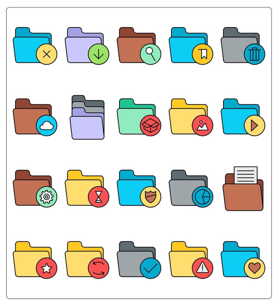 A set of 20 folder icons as delete folder, download folder, search folder Pro Vector