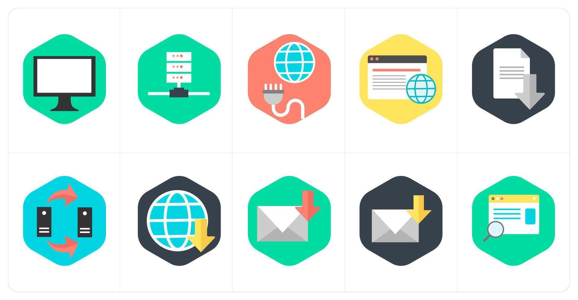 A set of 10 mix icons as computer, server, global connection Pro Vector