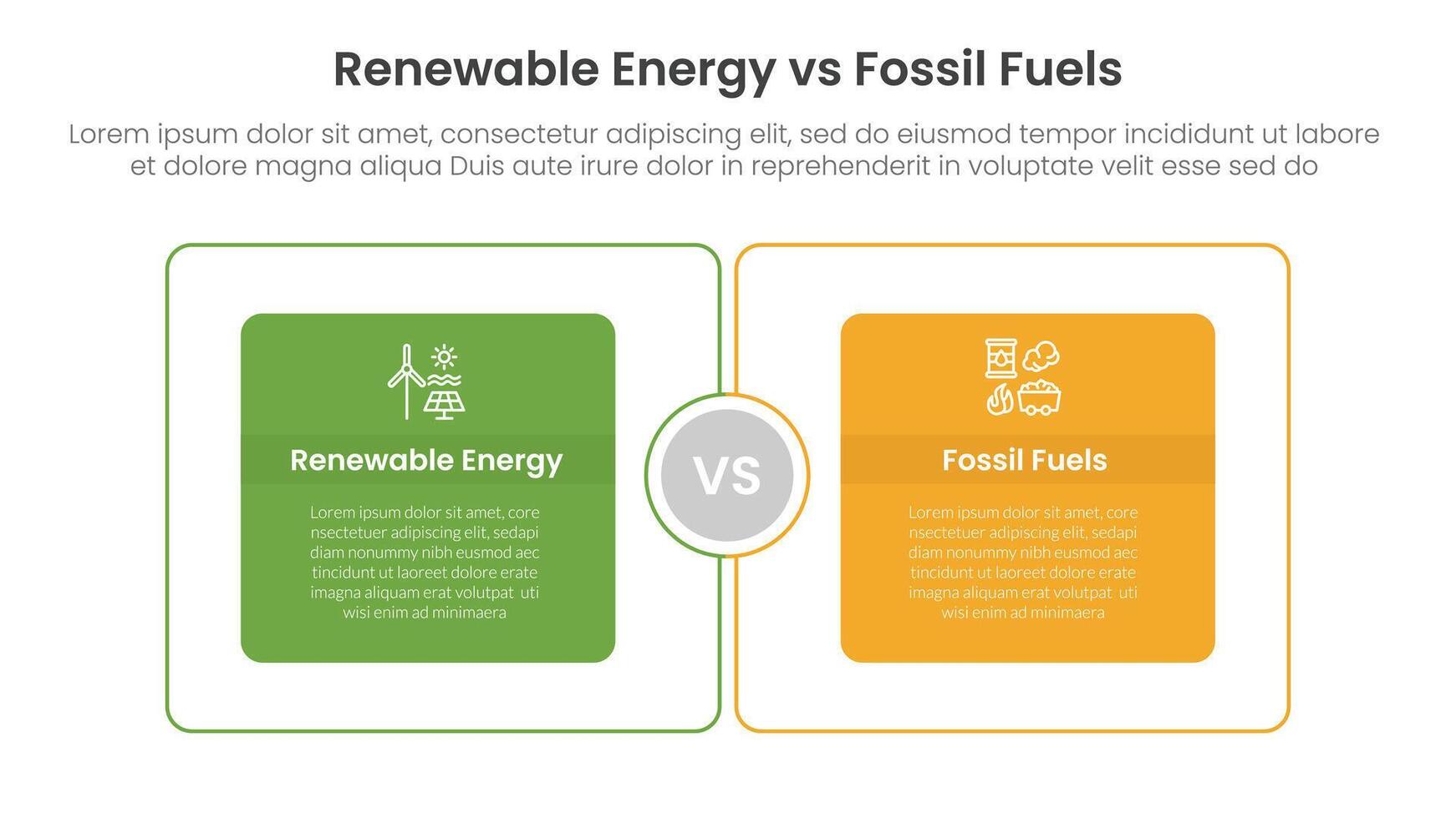 Renewable energy vs fossil fuels comparison concept for infographic template banner with big outline box circular with two point list information vector