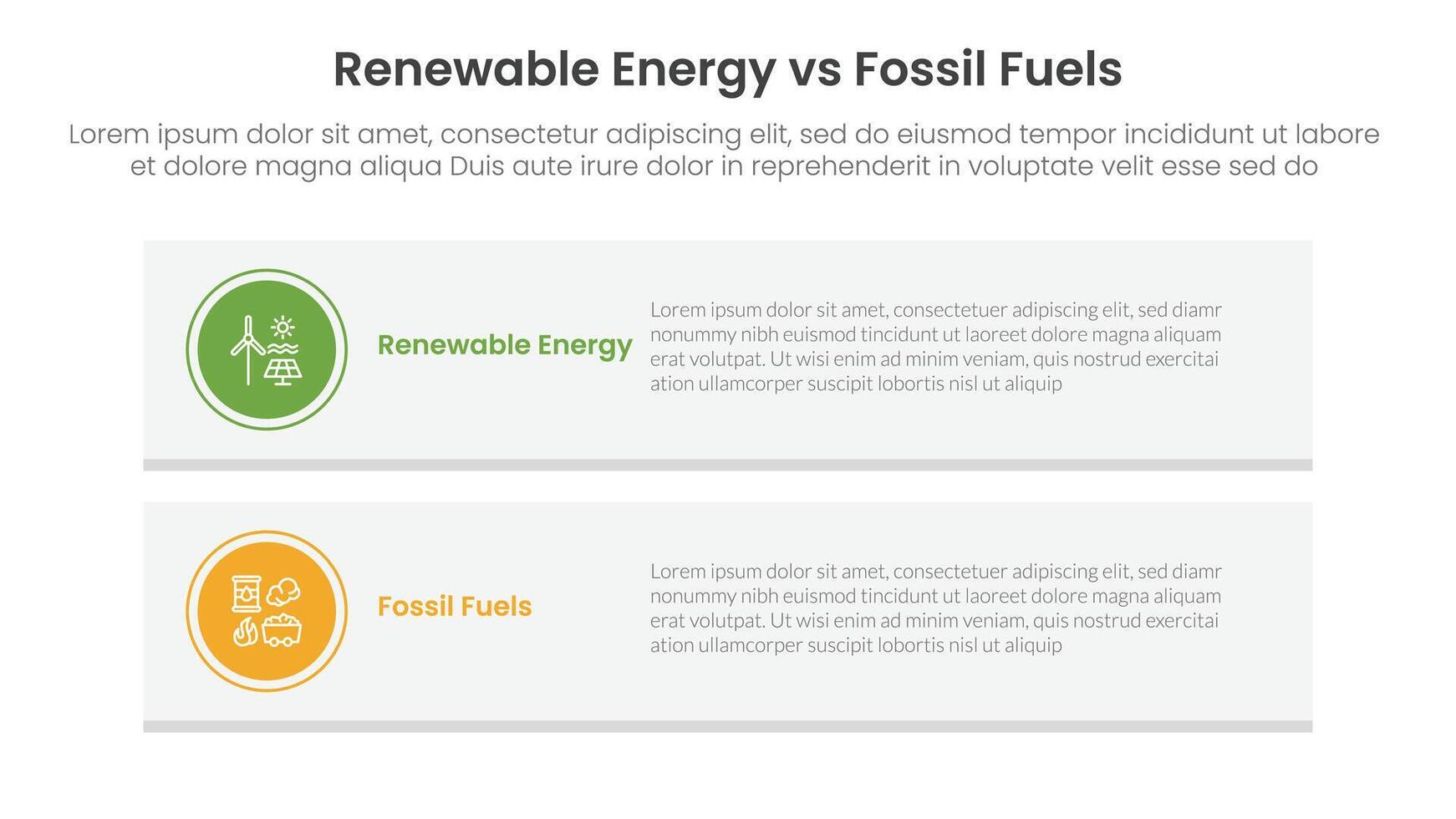 Renewable energy vs fossil fuels comparison concept for infographic template banner with long rectangle box vertical with two point list information Pro Vector