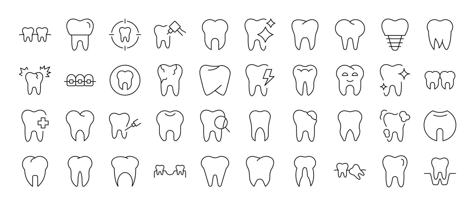 Tooth Line Icon Bundle. Editable Stroke. Minimalistic Linear Pictogram for Design of Cards, Apps, Banners, Posts Pro Vector