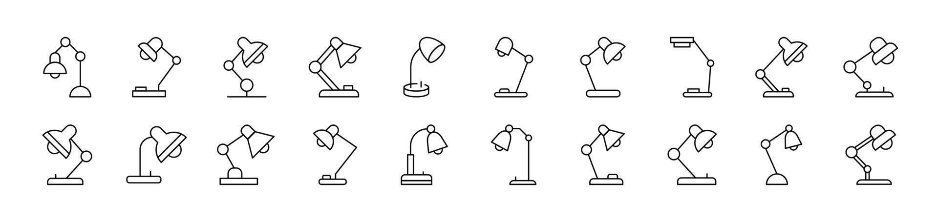 Table Lamp Set of Thin Icons. Editable Stroke. Suitable for Web Sites, Books, Cards, Apps Pro Vector