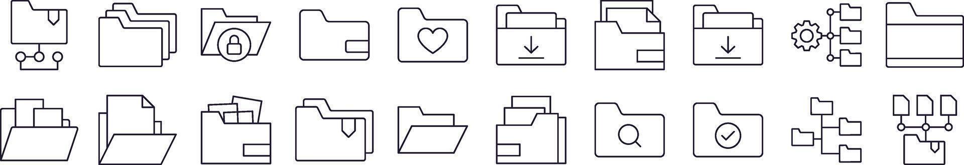Computer Folder Line Icon Set. Editable Stroke. Minimalistic Linear Pictogram for Design of Cards, Apps, Banners, Posts Pro Vector