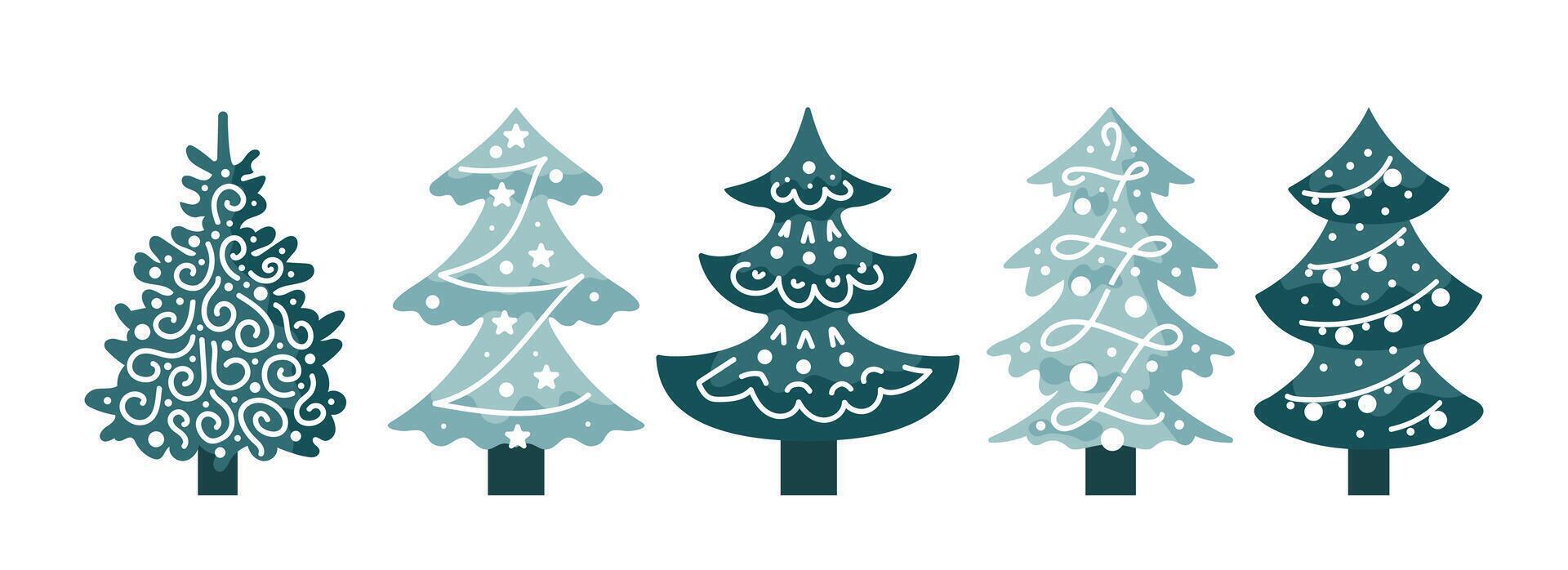 This set of Christmas trees showcases a minimalist design in a flat style. Each tree features simple lines and shapes, capturing the essence of the holiday spirit with elegant simplicity. Pro Vector