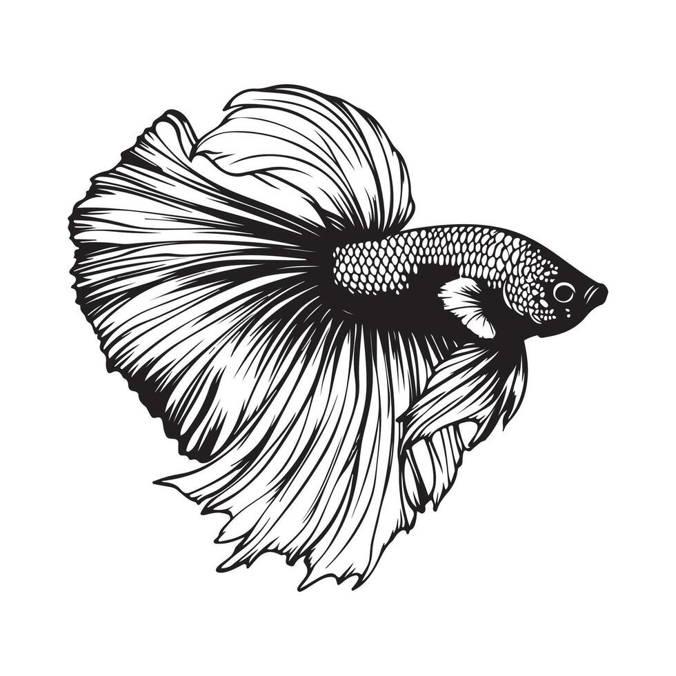 Black and White Betta Fishimage isolated On White Background Stock image Pro Vector