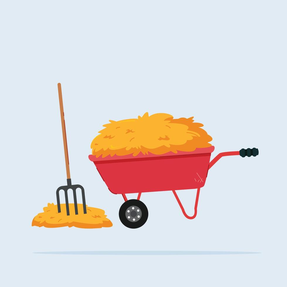 dry straw carried in a cart with a garden fork, suitable for posters and web icons Pro Vector
