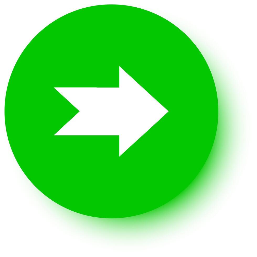 White arrow pointing right on green circle with drop shadow, ideal for indicating direction or progress in presentations, websites, and other digital media Pro Vector