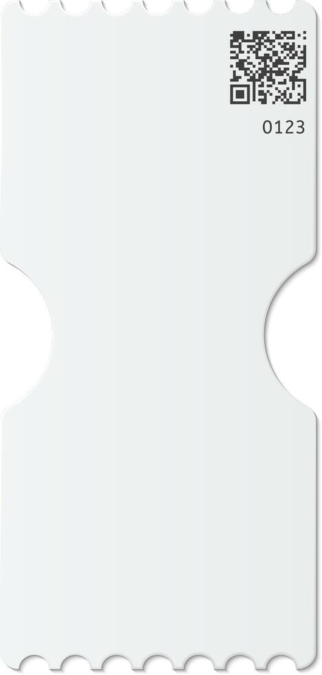 Blank white ticket with qr code and number waiting to be filled, isolated on white background, ready to be customized for any event or access control Pro Vector