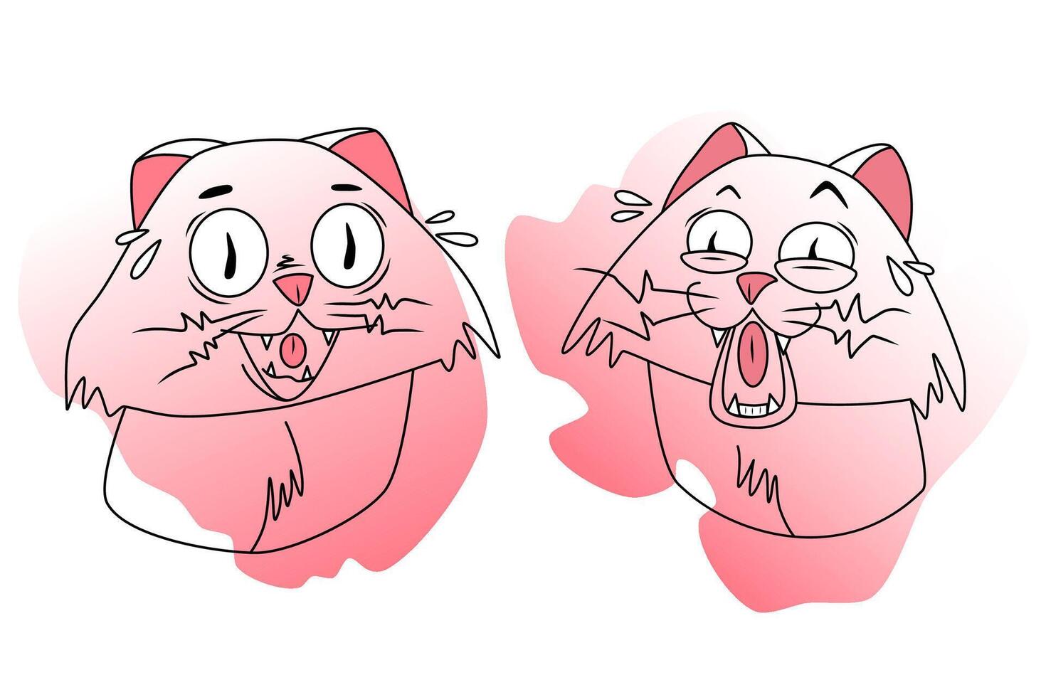 Surprised cat face illustration. Digital drawing in flat style with gradient shading. Animal character design concept for stickers and prints Pro Vector