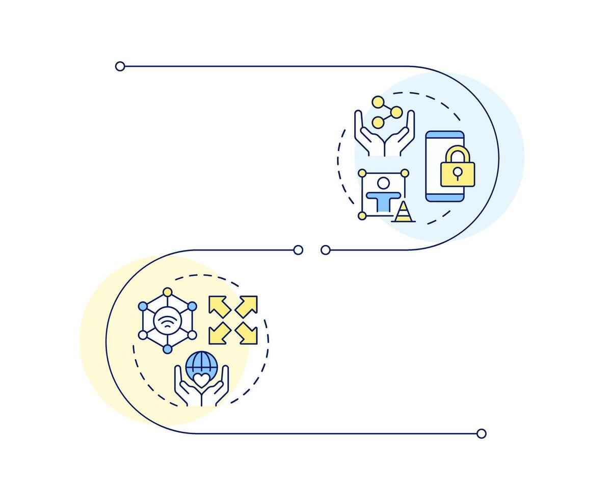 Digital experiences infographic vertical sequence. Audience analysis online. E marketing strategy. Visualization infochart with 2 steps. Circles workflow Pro Vector