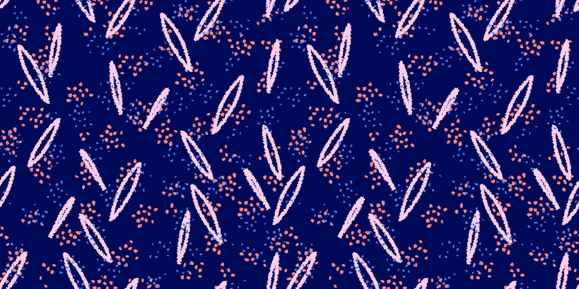 Abstract pattern with hand-drawn pink elongated shapes and scattered dots on a deep navy background. Design for textiles, digital art, and modern design projects. Free Vector
