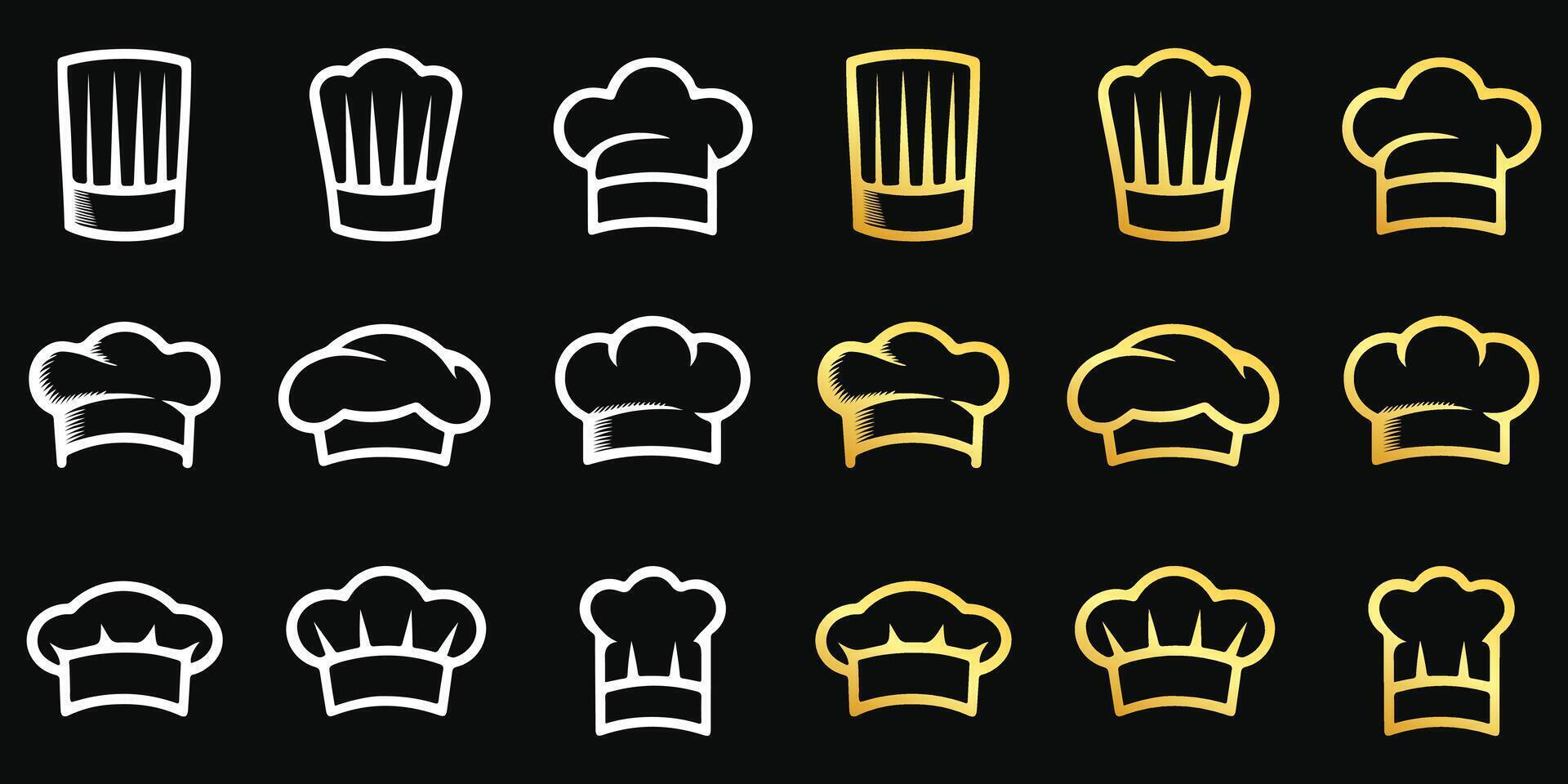 Set of Wight and goldens gradient Chef Cap Logo and icon set template Pro Vector