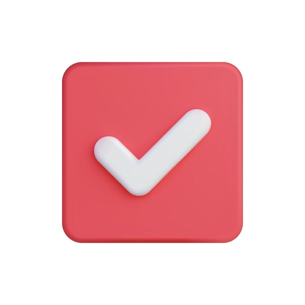 3d icon of a red check mark, symbolizing approval and confirmation Pro Vector