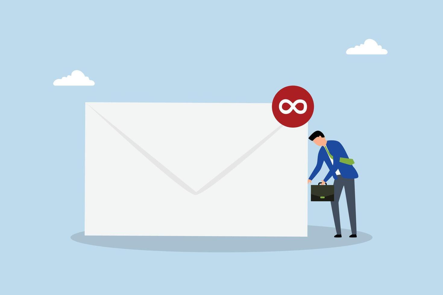 Busy email overload, desperate despair entrepreneur with his inbox filled with endless unread messages. Pro Vector