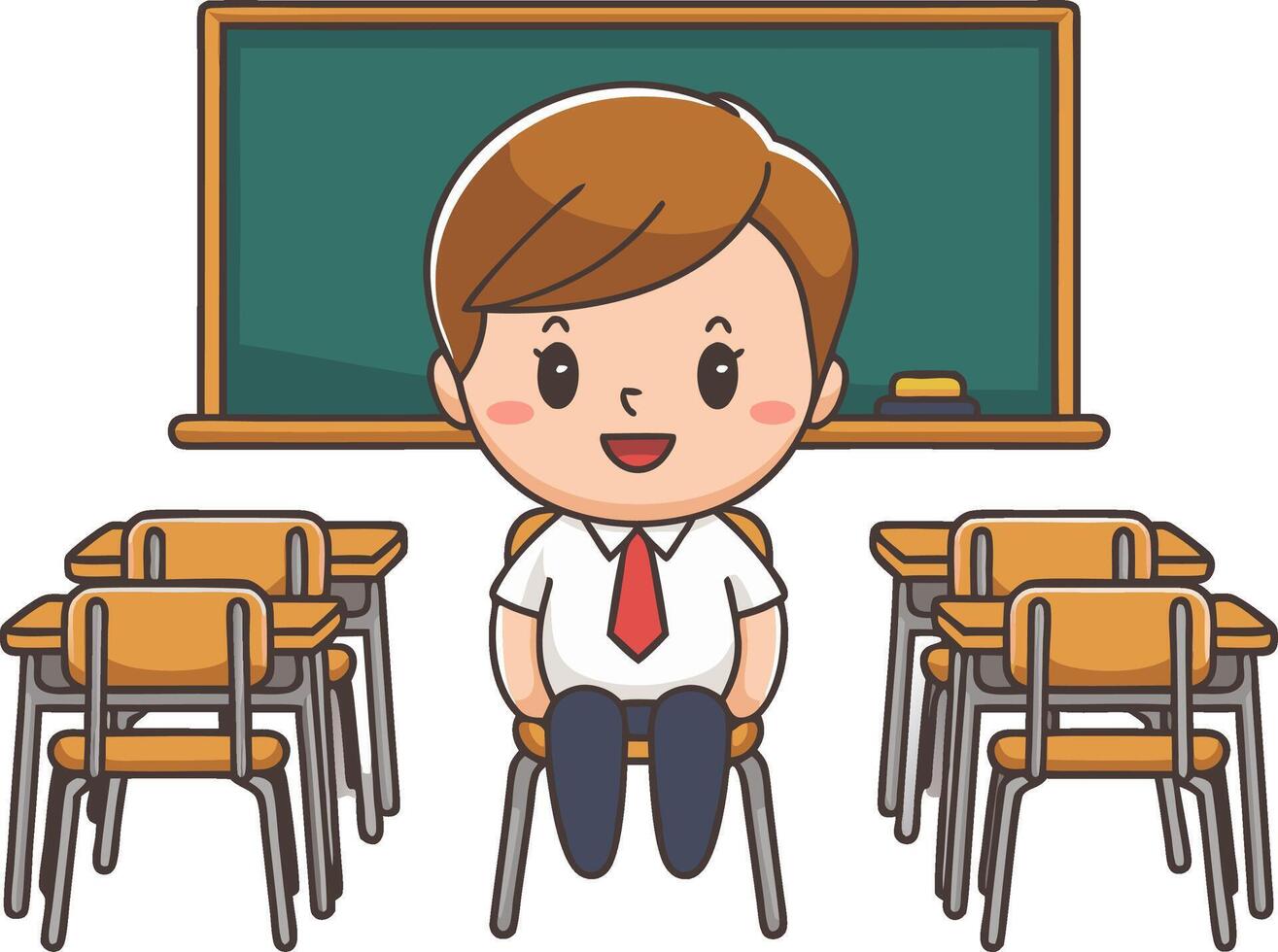 Cute Student Character in Classroom Setting with Chalkboard and Desks vector